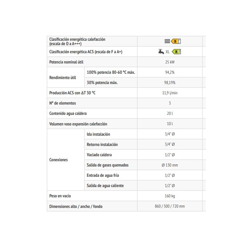 Grupo térmico analógico de hierro fundido a gasoleo para calefacción y agua caliente sanitaria.